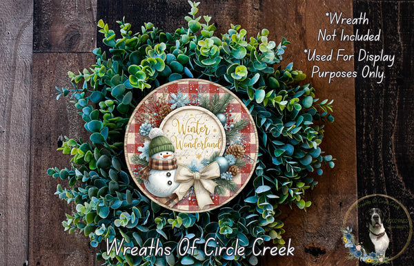 Winter Wonderland Snowman | Cozy Winter Buffalo Plaid Decor | Lightweight Round Metal Wreath Sign | No Holes in Sign | Holiday Sign